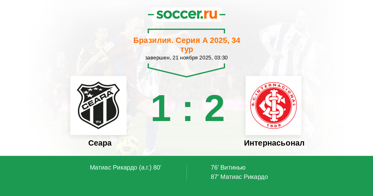 Сеара - Интернасьонал: обзор матча 21 ноября 2025