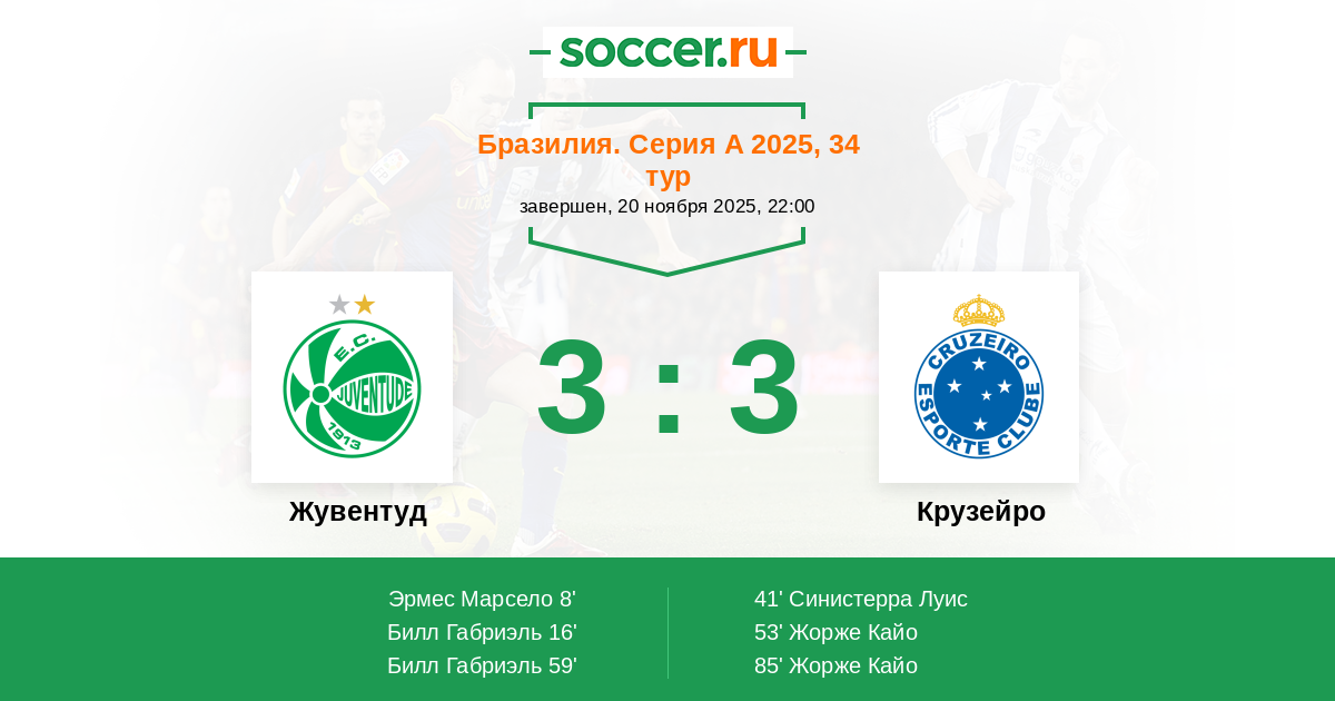 Жувентуд - Крузейро: обзор матча 20 ноября 2025