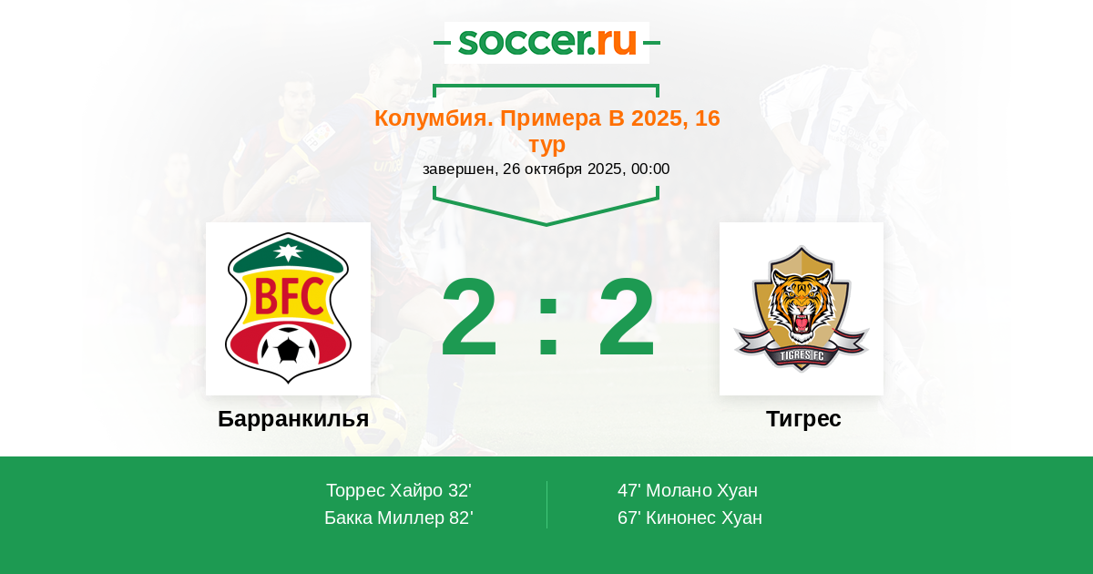 Барранкилья - Тигрес: обзор матча 26 октября 2025