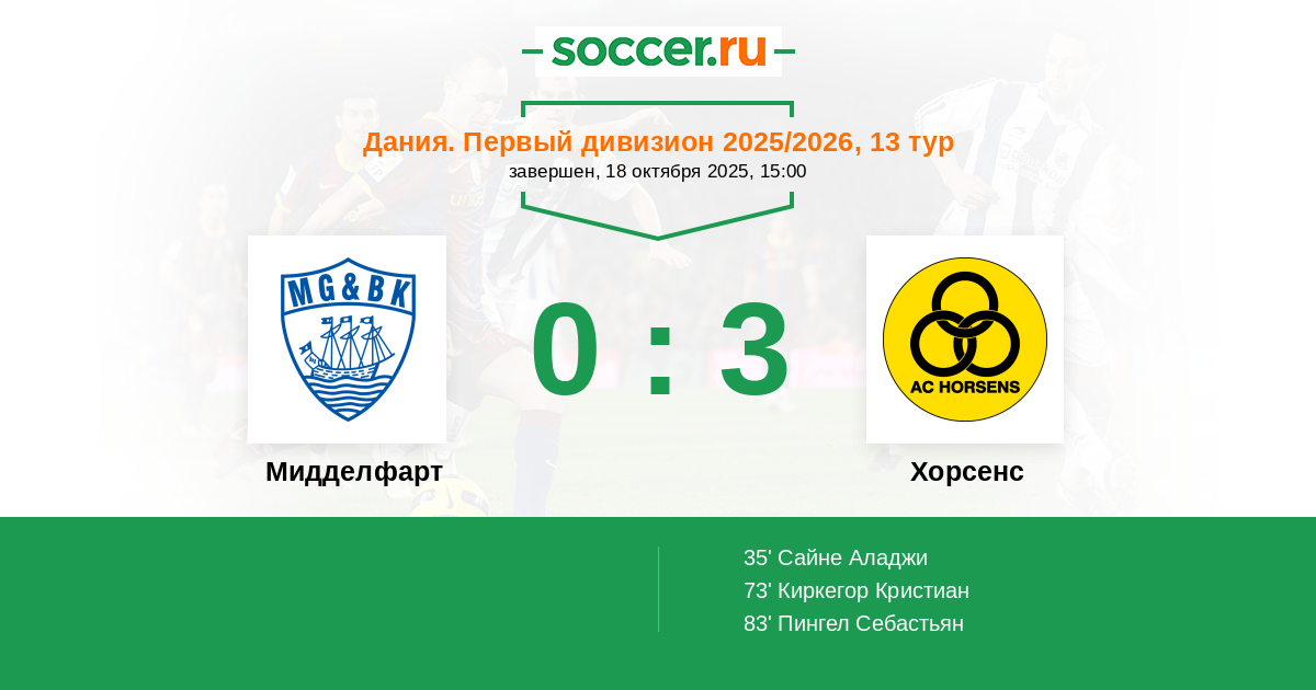 Мидделфарт - Хорсенс: обзор матча 18 октября 2025