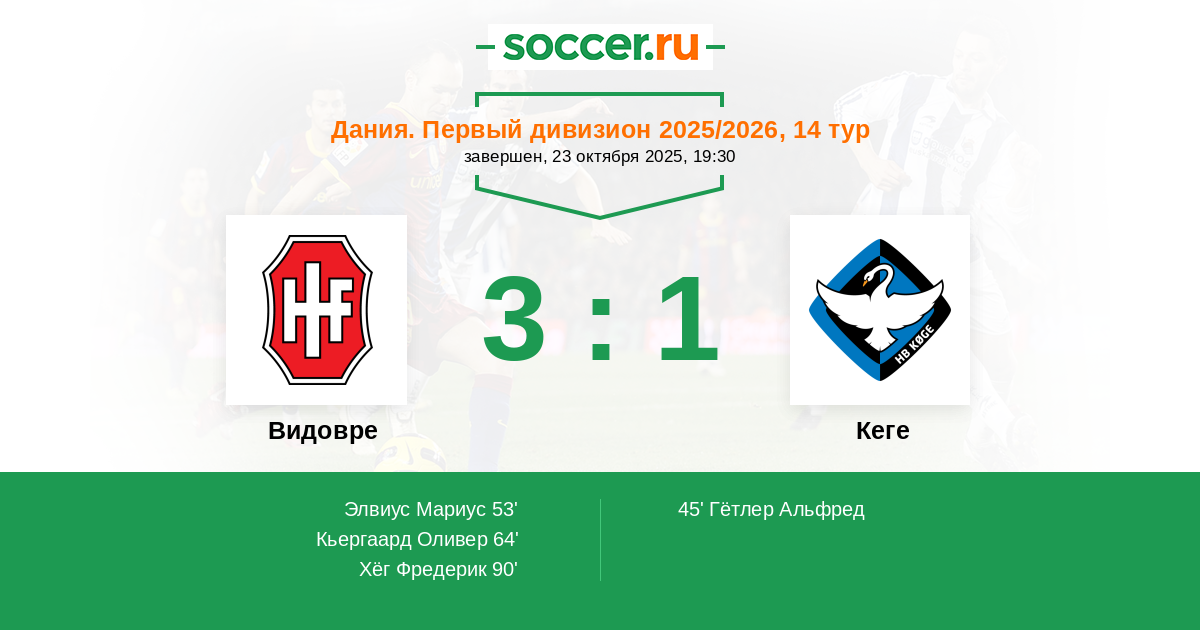 Видовре - Кеге: обзор матча 23 октября 2025