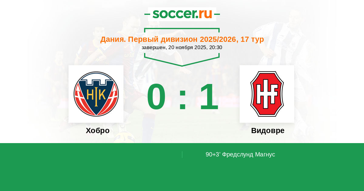 Хобро - Видовре: обзор матча 20 ноября 2025