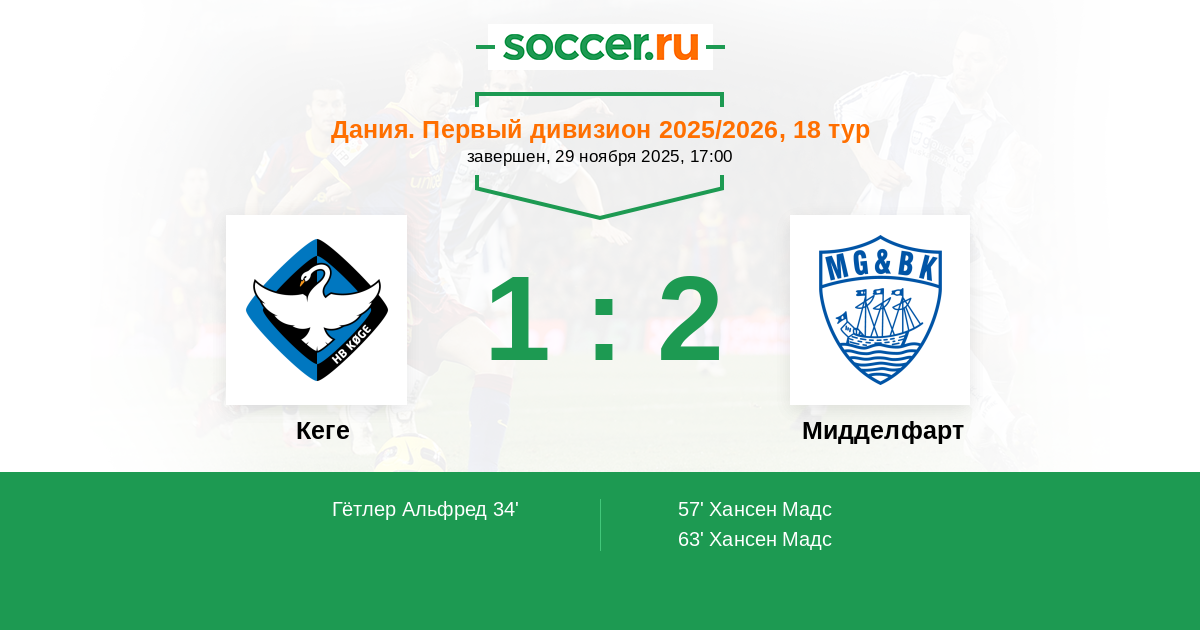 Кеге - Мидделфарт: обзор матча 29 ноября 2025