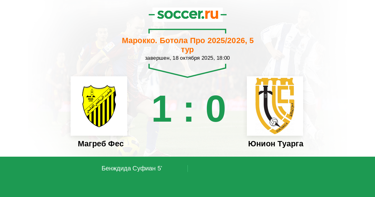 Магреб Фес - Юнион Туарга: обзор матча 18 октября 2025
