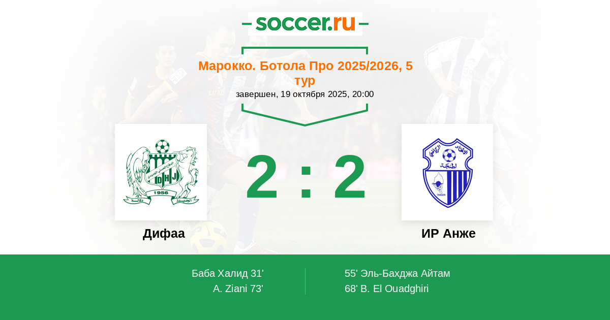 Дифаа - ИР Анже: обзор матча 19 октября 2025