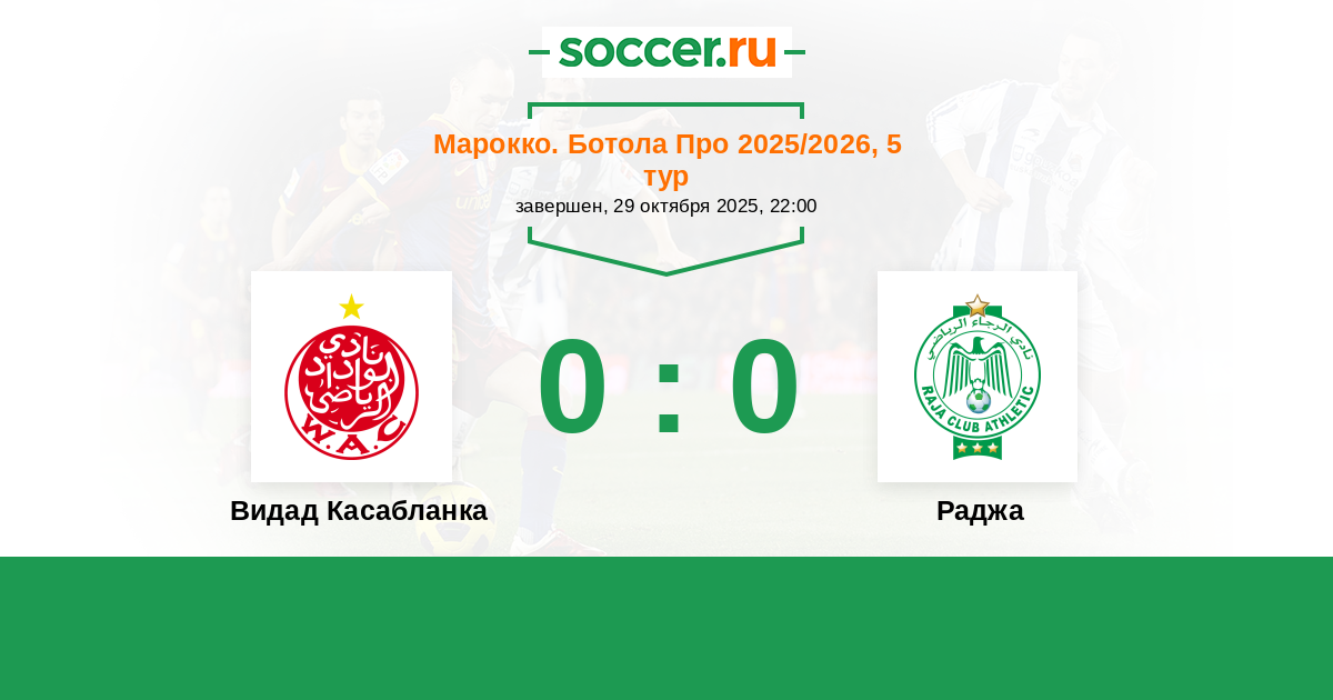 Видад Касабланка - Раджа: обзор матча 29 октября 2025