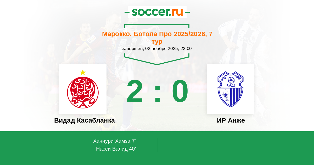 Видад Касабланка - ИР Анже: обзор матча 2 ноября 2025