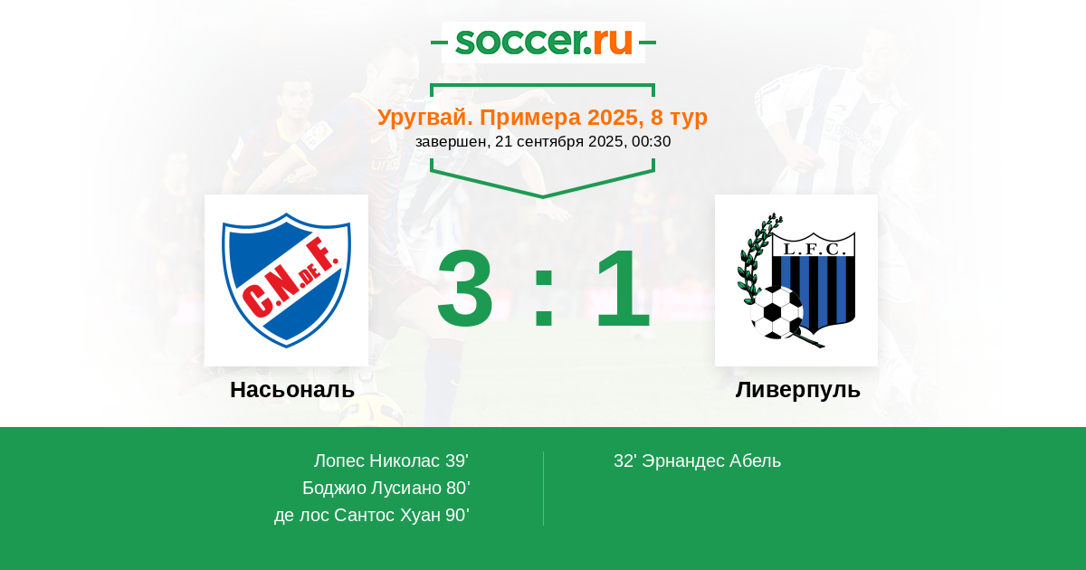 Насьональ - Ливерпуль: обзор матча 21 сентября 2025