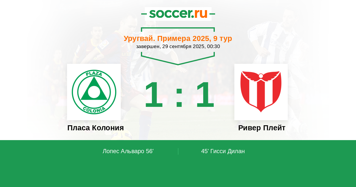 Пласа Колония - Ривер Плейт: обзор матча 29 сентября 2025