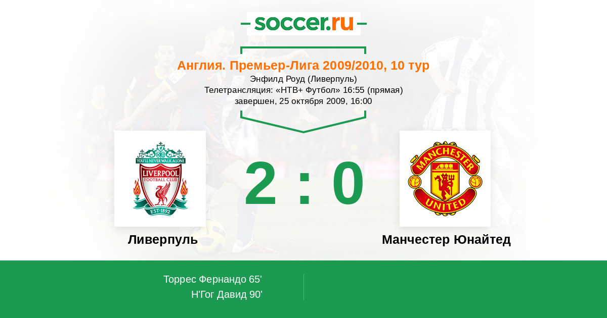 Ливерпуль - Манчестер Юнайтед: обзор матча 25 октября 2009