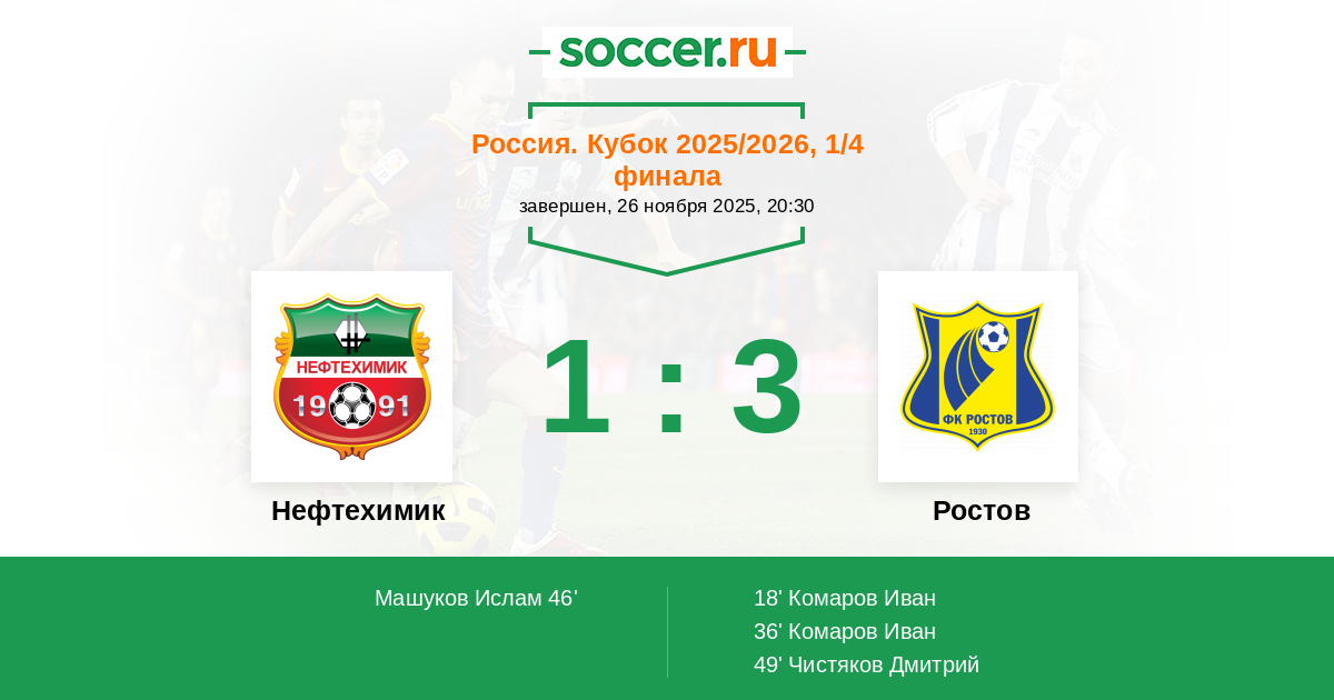 Нефтехимик - Ростов: обзор матча 26 ноября 2025
