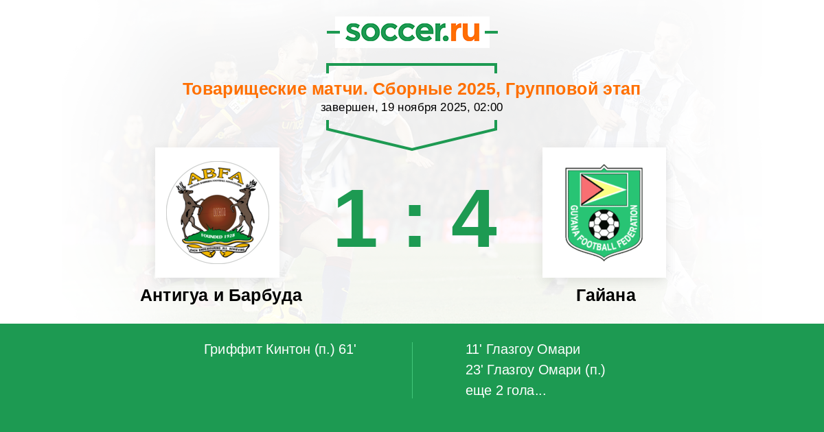 Антигуа и Барбуда - Гайана: обзор матча 19 ноября 2025