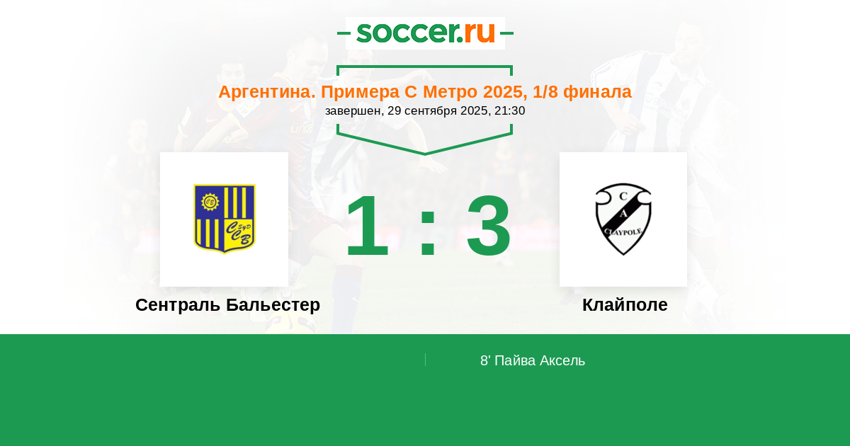 Сентраль Бальестер - Клайполе: обзор матча 29 сентября 2025
