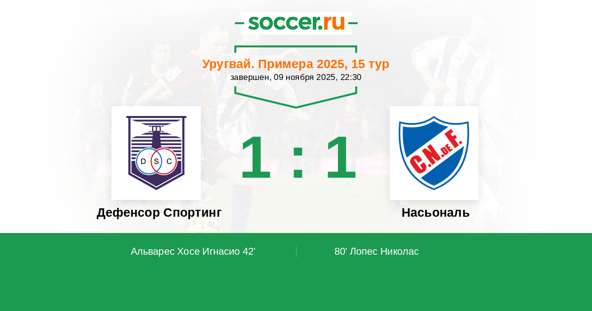 Дефенсор Спортинг - Насьональ: обзор матча 9 ноября 2025