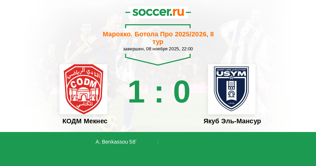 КОДМ Мекнес - Якуб Эль-Мансур: обзор матча 8 ноября 2025