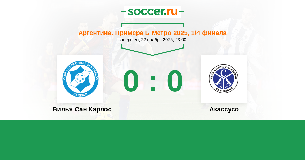Вилья Сан Карлос - Акассусо: обзор матча 22 ноября 2025