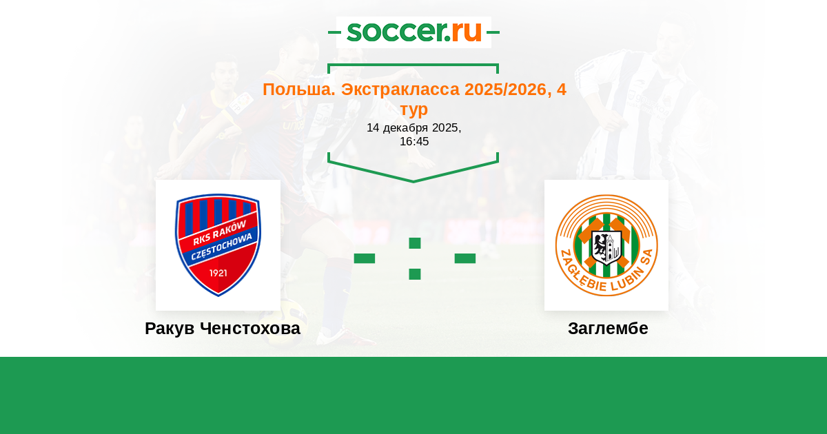 Ракув Ченстохова - Заглембе: обзор матча 14 декабря 2025