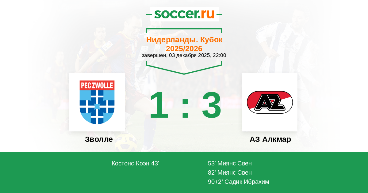 Зволле - АЗ Алкмар: обзор матча 3 декабря 2025