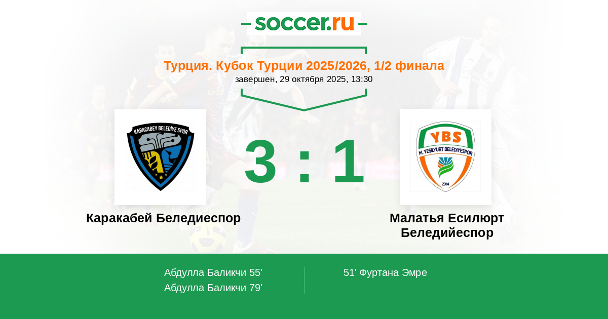 Каракабей Беледиеспор - Малатья Есилюрт Беледийеспор: обзор матча 29 октября 2025