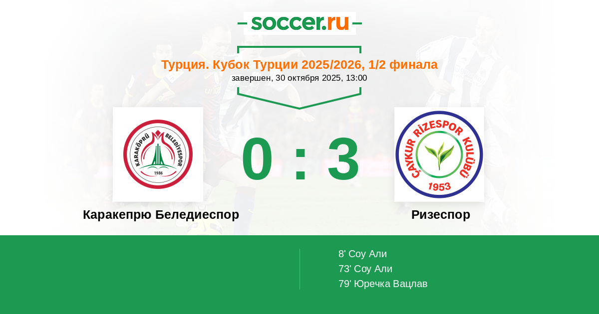 Каракепрю Беледиеспор - Ризеспор: обзор матча 30 октября 2025
