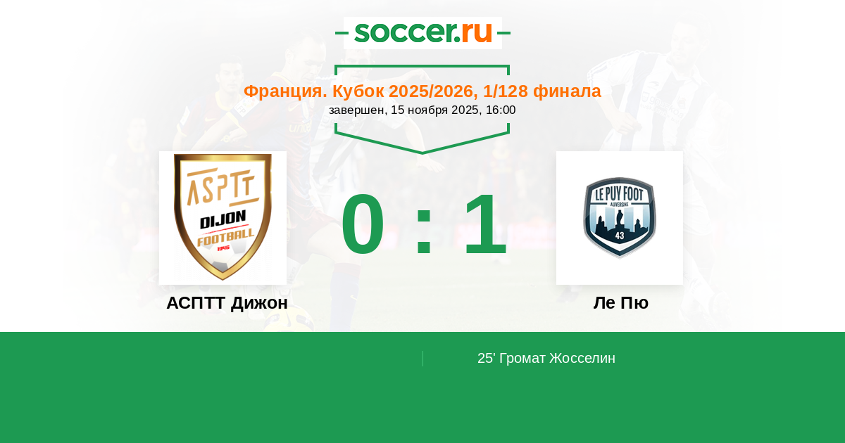 АСПТТ Дижон - Ле Пю: обзор матча 15 ноября 2025