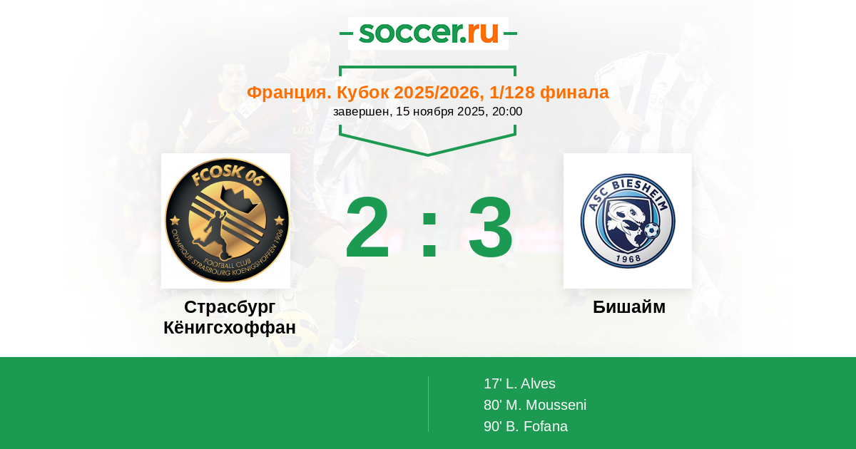 Страсбург Кёнигсхоффан - Бишайм: обзор матча 15 ноября 2025