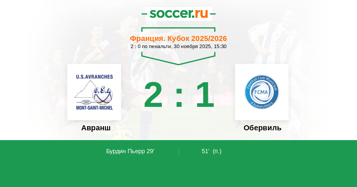 Авранш - Обервиль: обзор матча 30 ноября 2025