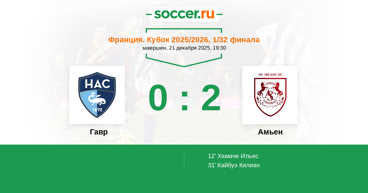 Гавр - Амьен: обзор матча 21 декабря 2025