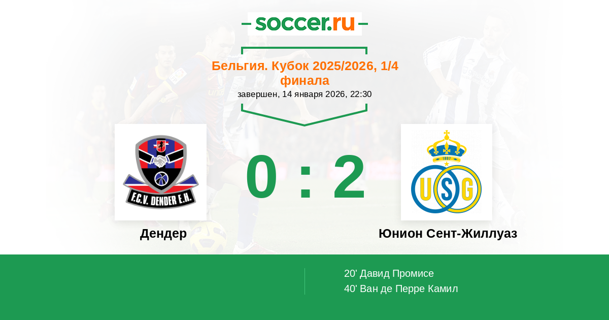 Дендер - Юнион Сент-Жиллуаз: обзор матча 14 января 2026