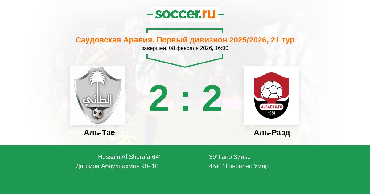 Аль-Тае - Аль-Раэд: обзор матча 8 февраля 2026
