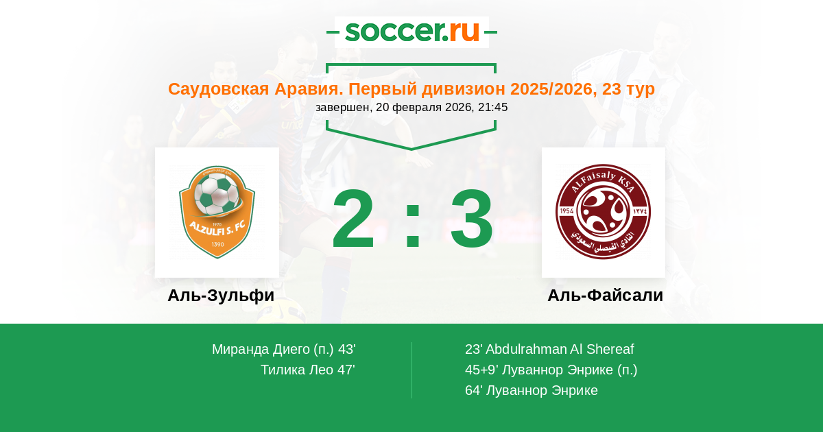 Аль-Зульфи - Аль-Файсали: обзор матча 20 февраля 2026