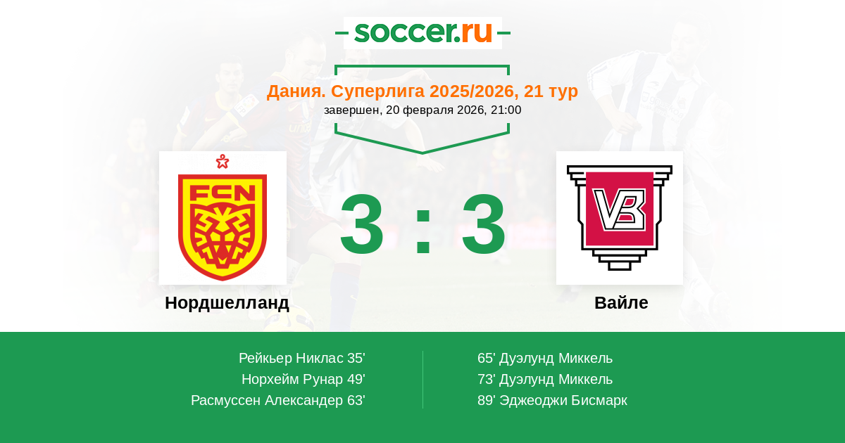Нордшелланд - Вайле: обзор матча 20 февраля 2026