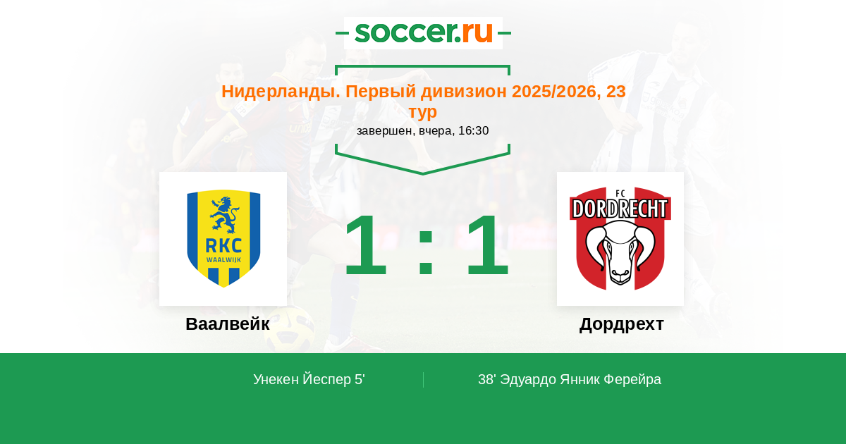 Ваалвейк - Дордрехт: обзор матча 18 января 2026