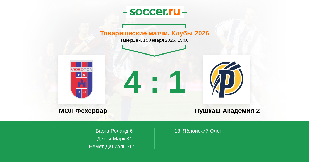 МОЛ Фехервар - Пушкаш Академия 2: обзор матча 15 января 2026