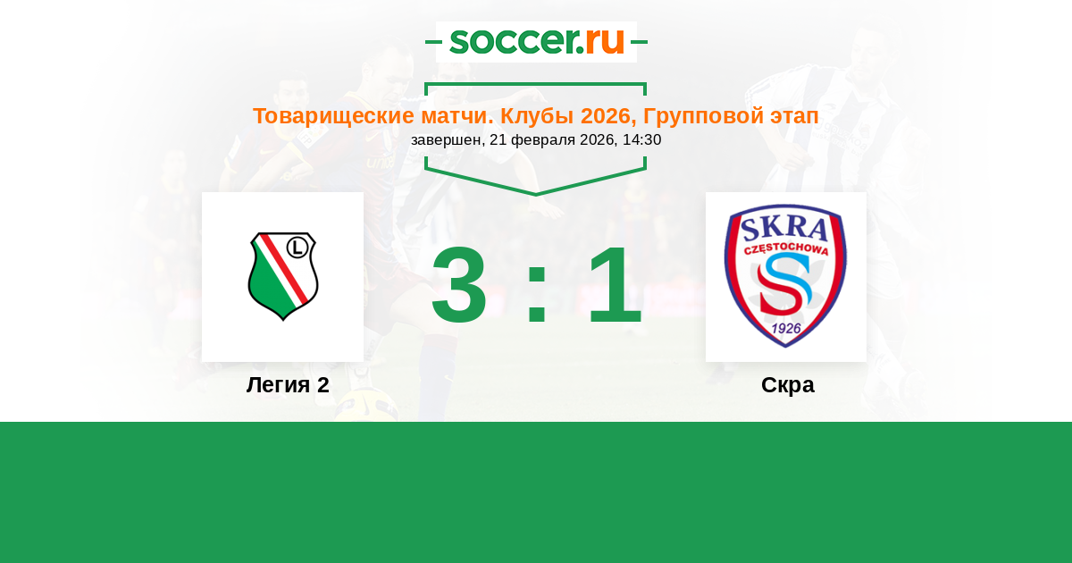 Легия 2 - Скра: обзор матча 21 февраля 2026
