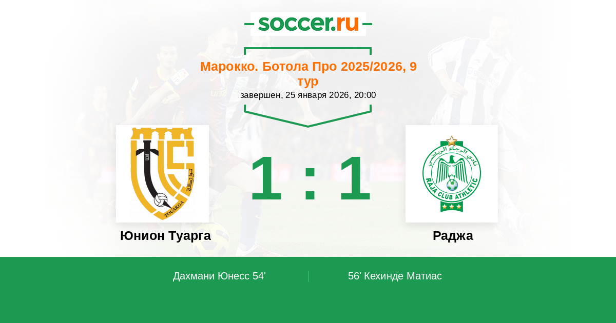 Юнион Туарга - Раджа: обзор матча 25 января 2026