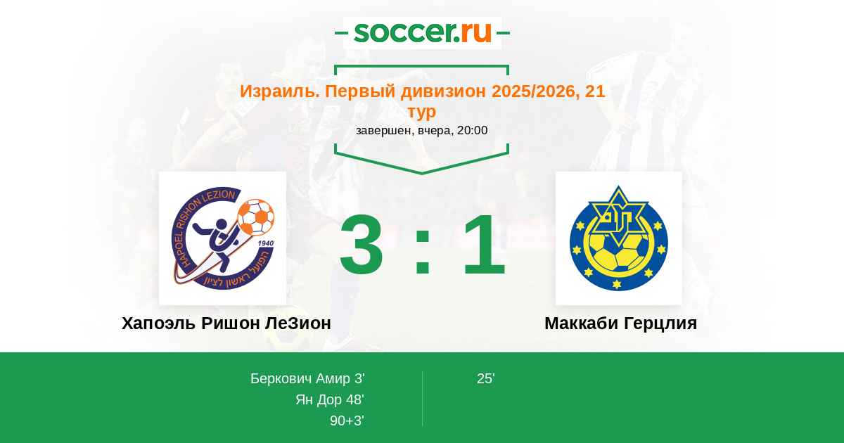 Хапоэль Ришон ЛеЗион - Маккаби Герцлия: обзор матча 2 февраля 2026