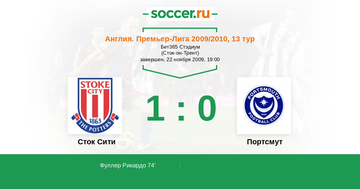 Сток Сити - Портсмут: обзор матча 22 ноября 2009