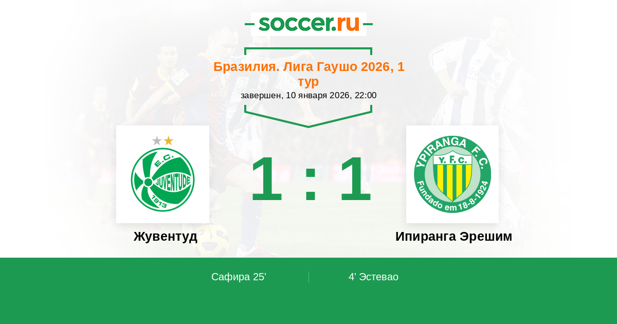 Жувентуд - Ипиранга Эрешим: обзор матча 10 января 2026