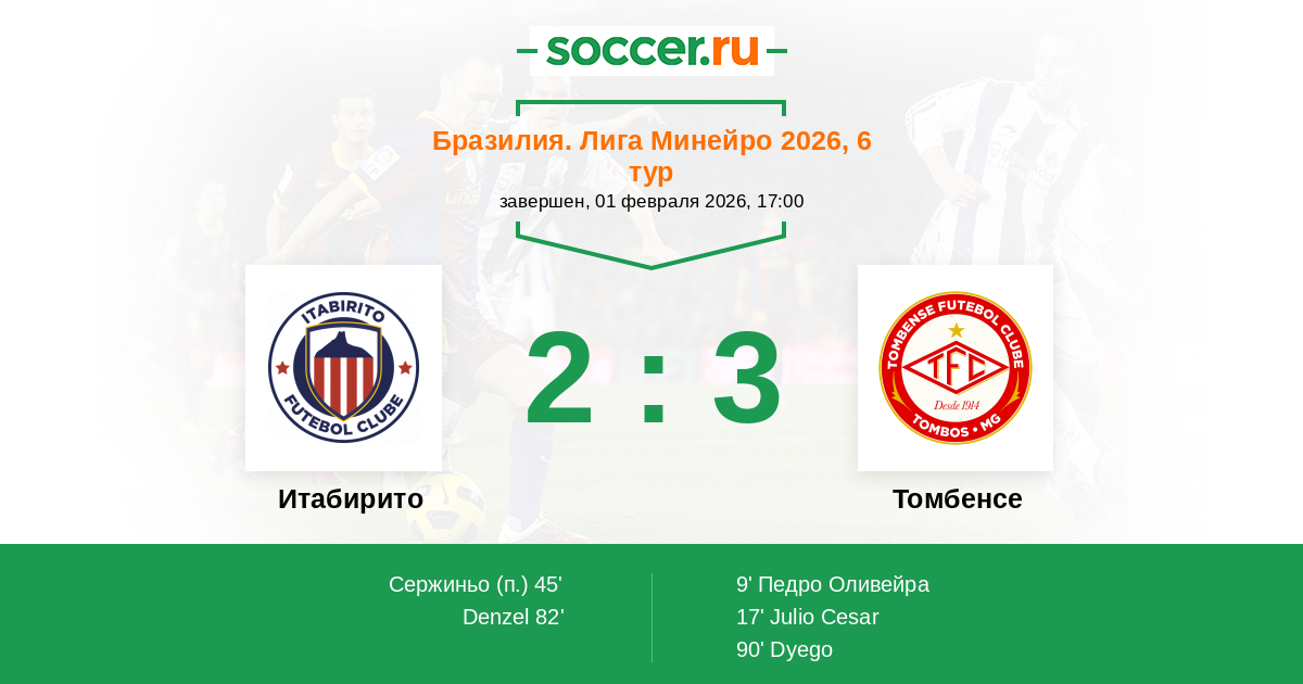 Итабирито - Томбенсе: обзор матча 1 февраля 2026