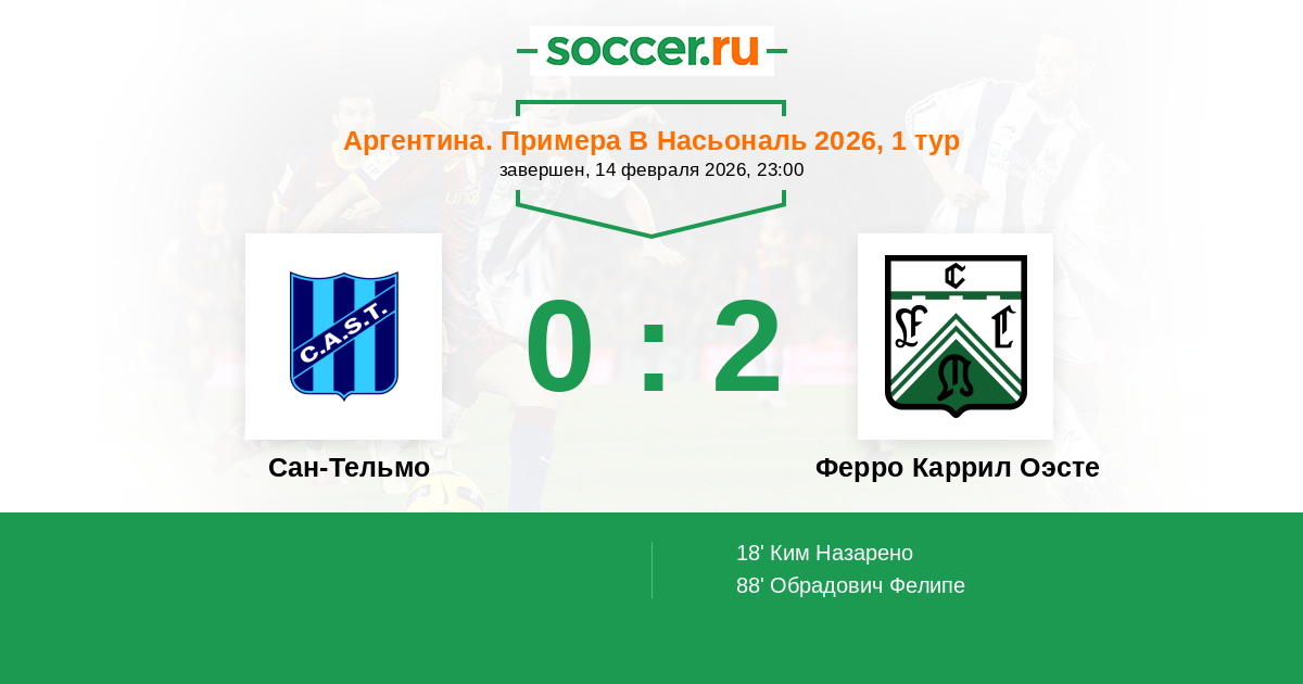 Сан-Тельмо - Ферро Каррил Оэсте: обзор матча 14 февраля 2026