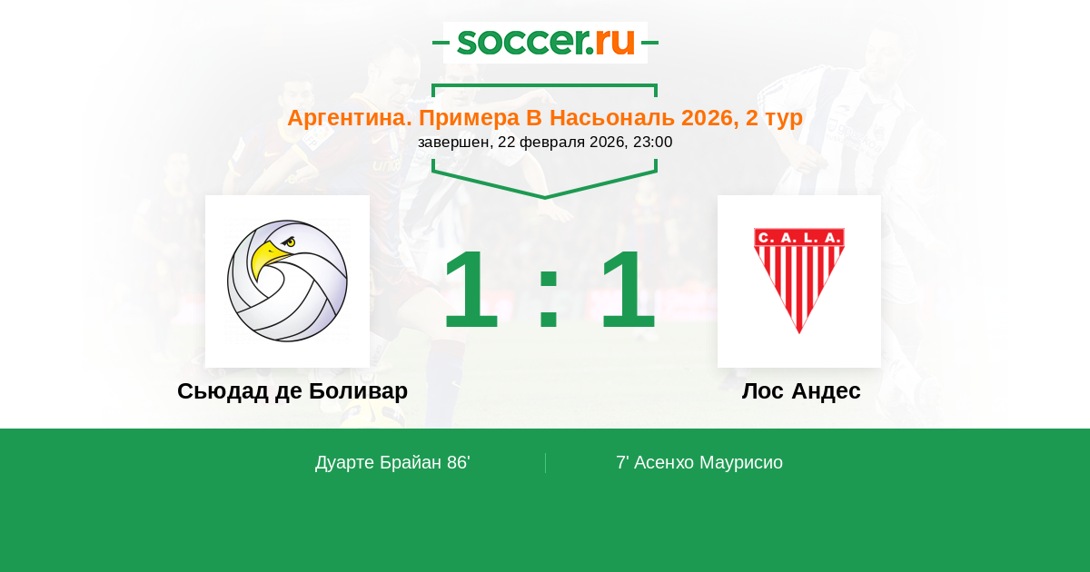 Сьюдад де Боливар - Лос Андес: обзор матча 22 февраля 2026