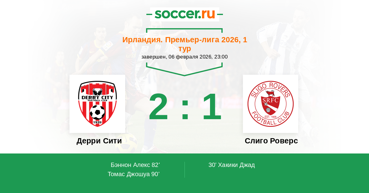 Дерри Сити - Слиго Роверс: обзор матча 6 февраля 2026