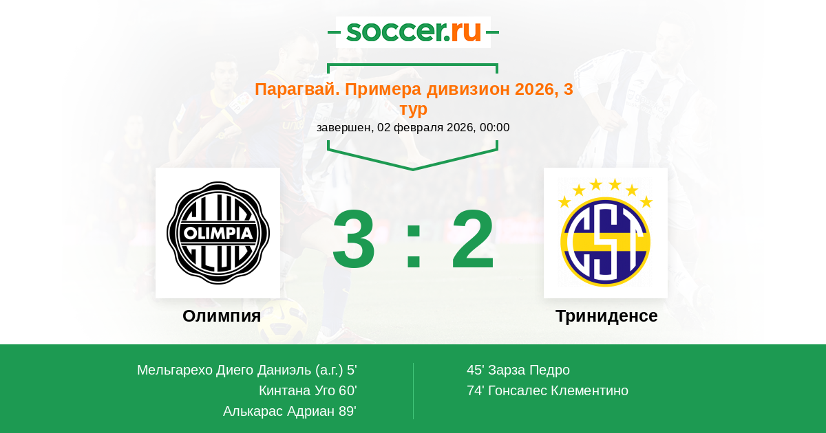 Олимпия - Триниденсе: обзор матча 2 февраля 2026