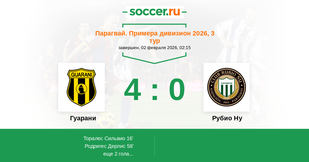 Гуарани - Рубио Ну: обзор матча 2 февраля 2026