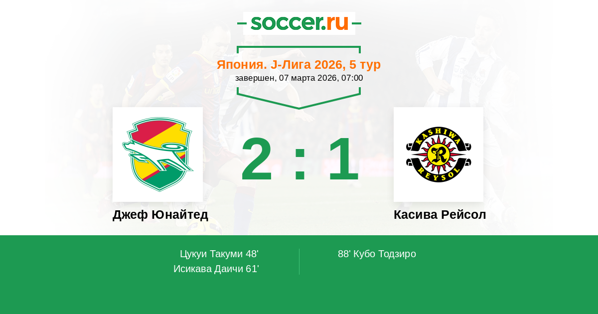 Джеф Юнайтед - Касива Рейсол: обзор матча 7 марта 2026