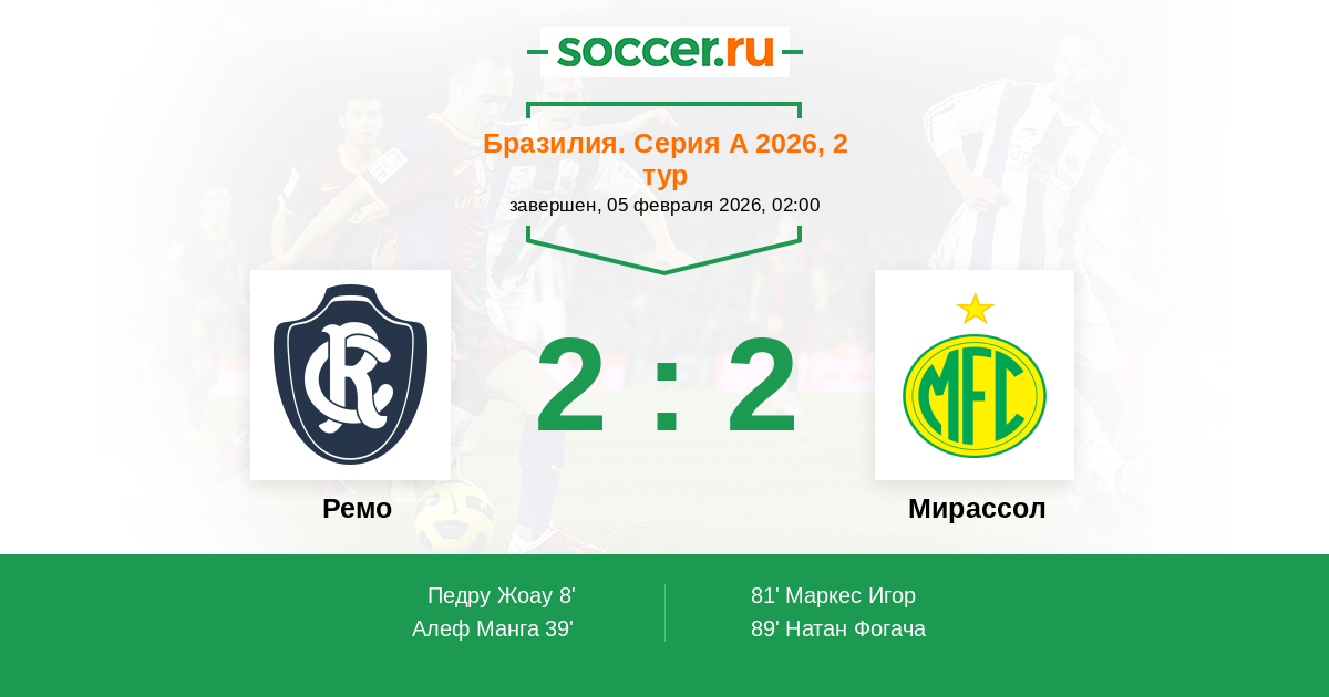 Ремо - Мирассол: обзор матча 5 февраля 2026