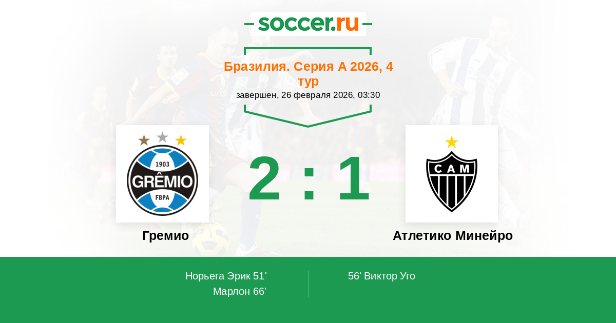 Гремио - Атлетико Минейро: обзор матча 26 февраля 2026