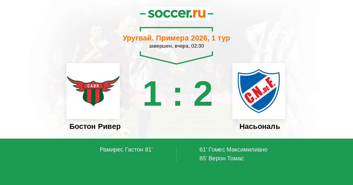 Бостон Ривер - Насьональ: обзор матча 9 февраля 2026