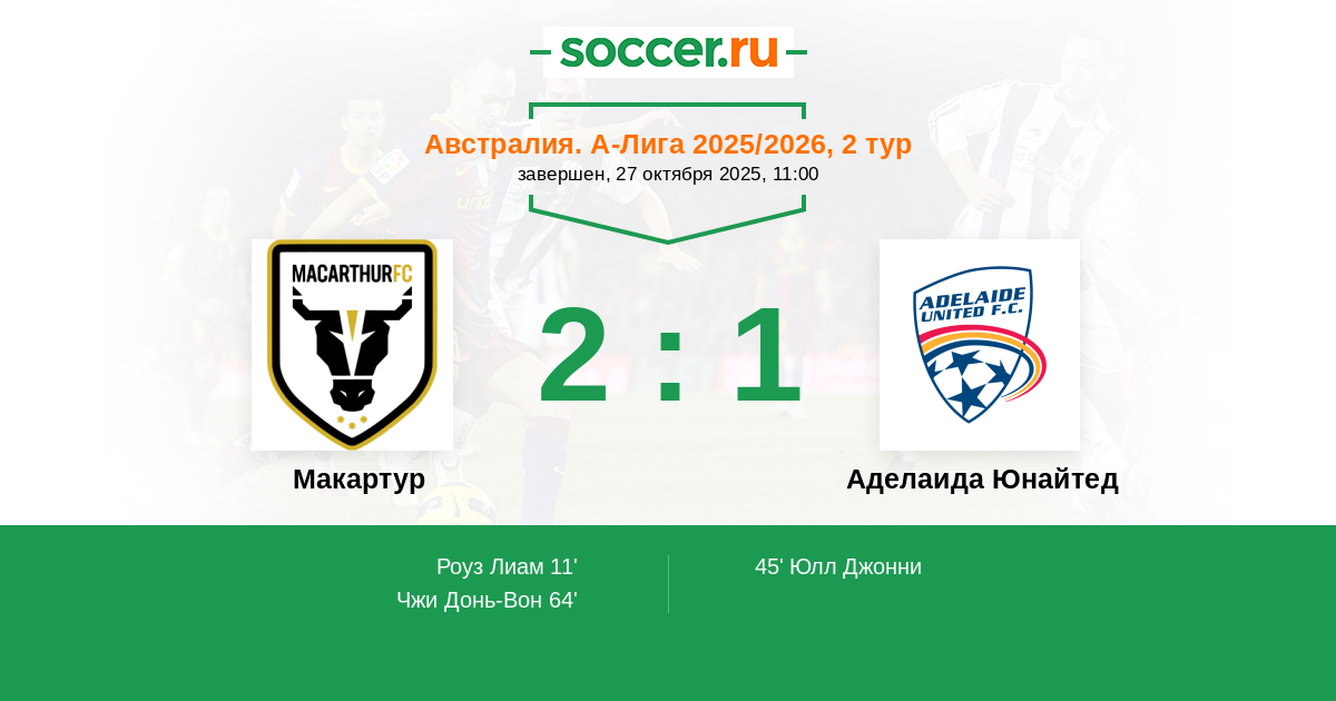 Макартур - Аделаида Юнайтед: обзор матча 27 октября 2025